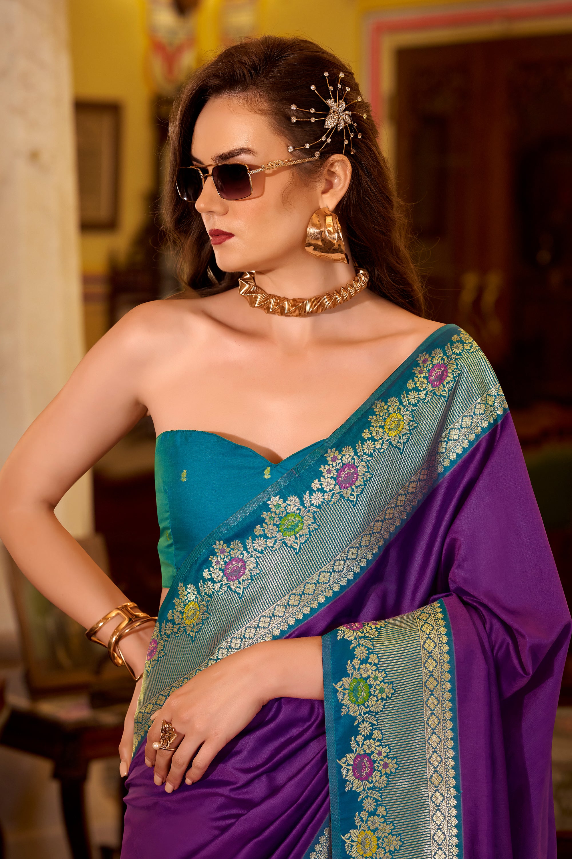 Festive Wear Purple Art Silk Zari Weaving Design Saree