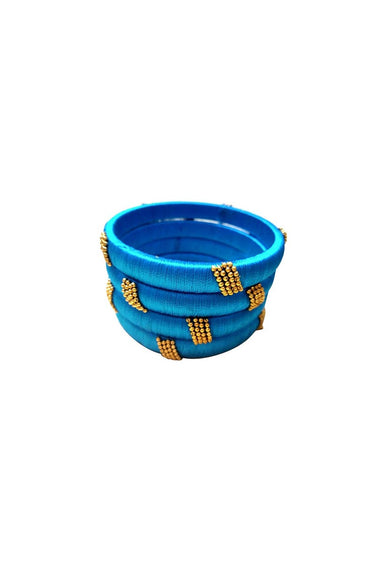 Designer Sky Blue Customized Silk Thread Classy Bangles Set