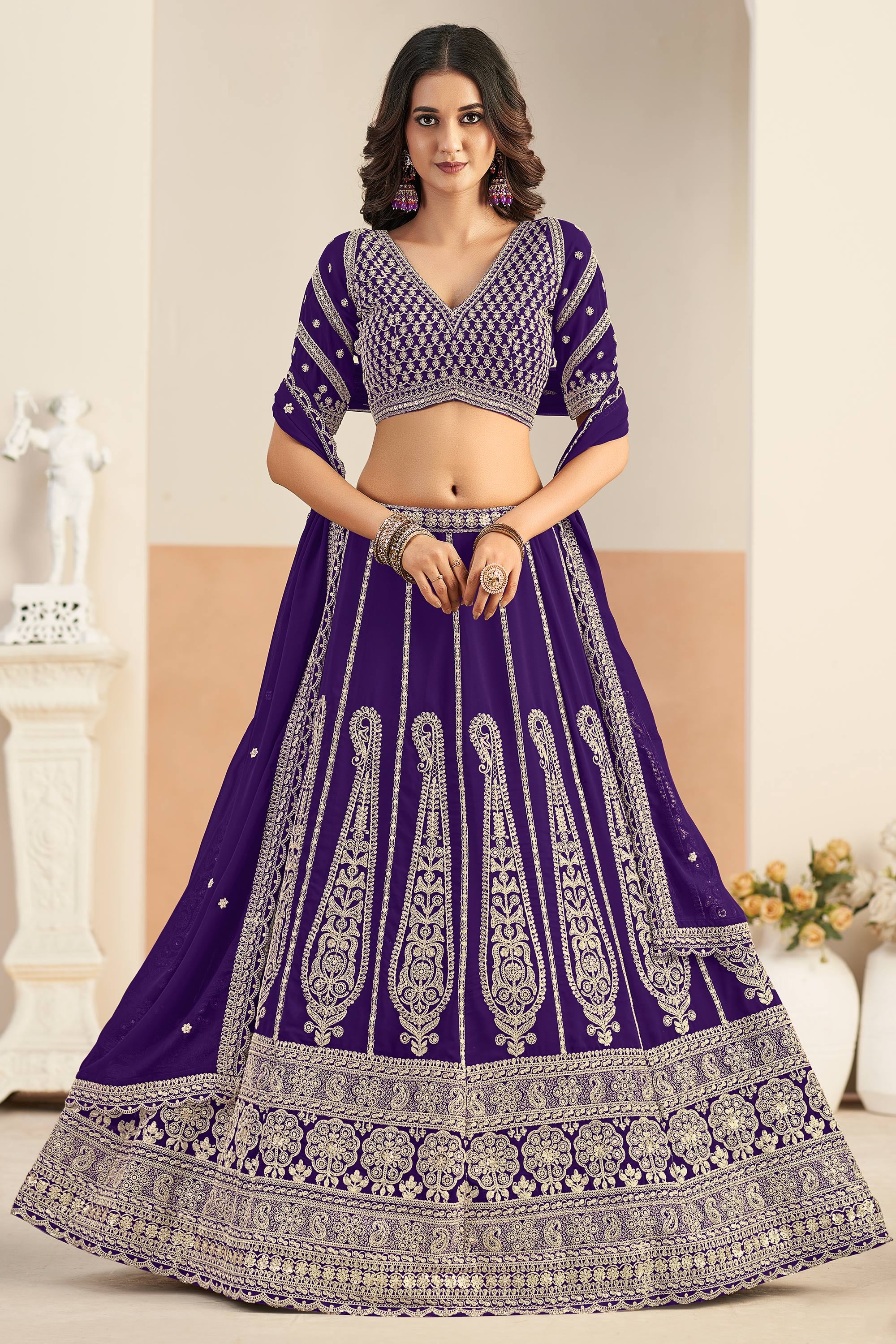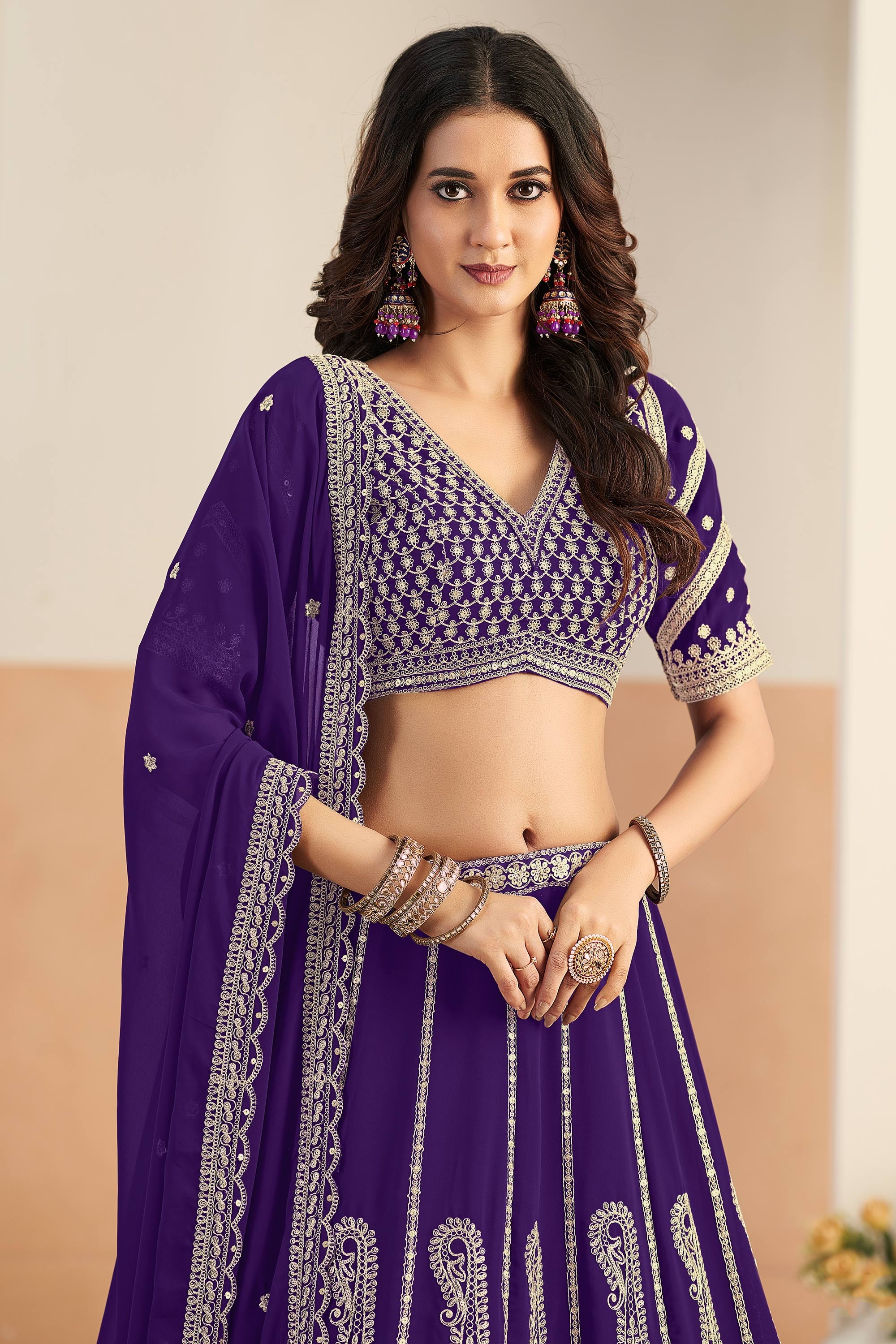 Festive Wear Purple Embroidered Georgette Lehenga Choli