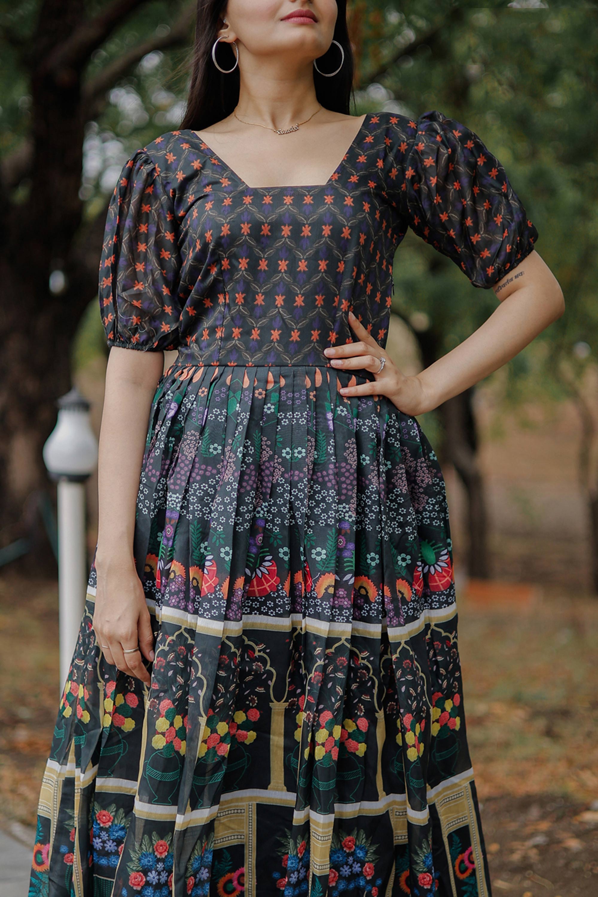 Make a graceful impression at functions with this elegant Readymade Gown crafted from premium Pure Chanderi fabric. The soft cotton inner ensures comfort, while the printed design enhances its festive appeal. Designed in a rich color, this gown is ideal for special gatherings, although slight color variations may occur due to digital photography.