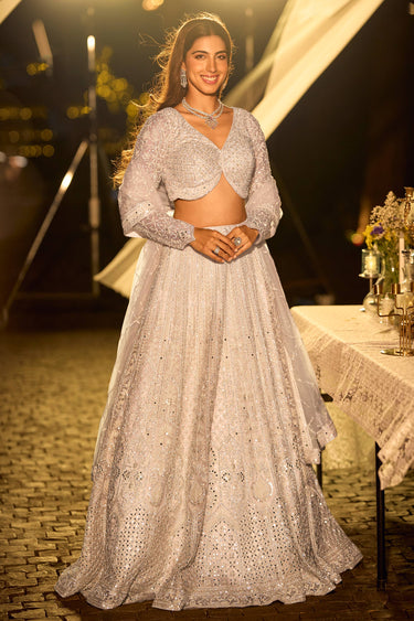 Net Fabric Off White Wedding Wear Readymade Lehenga Choli