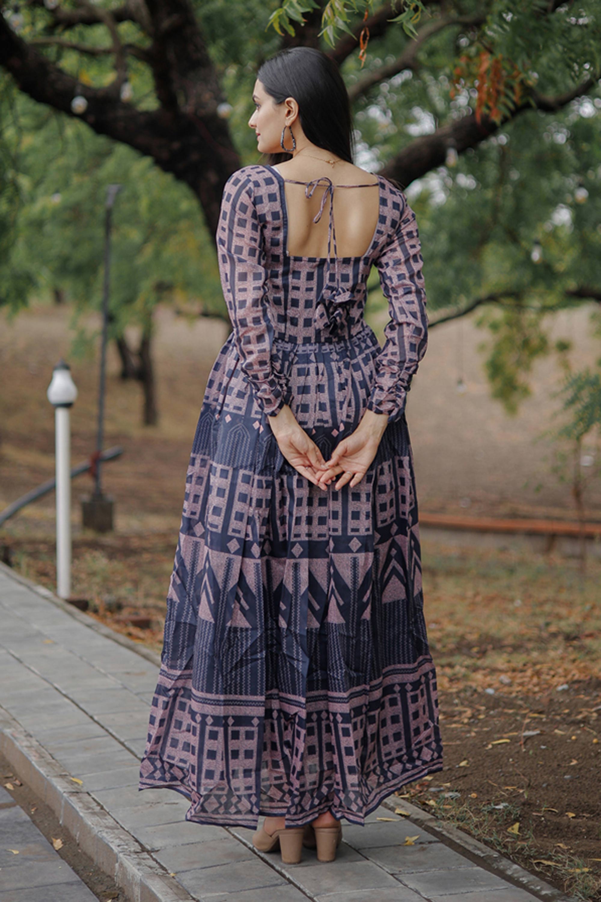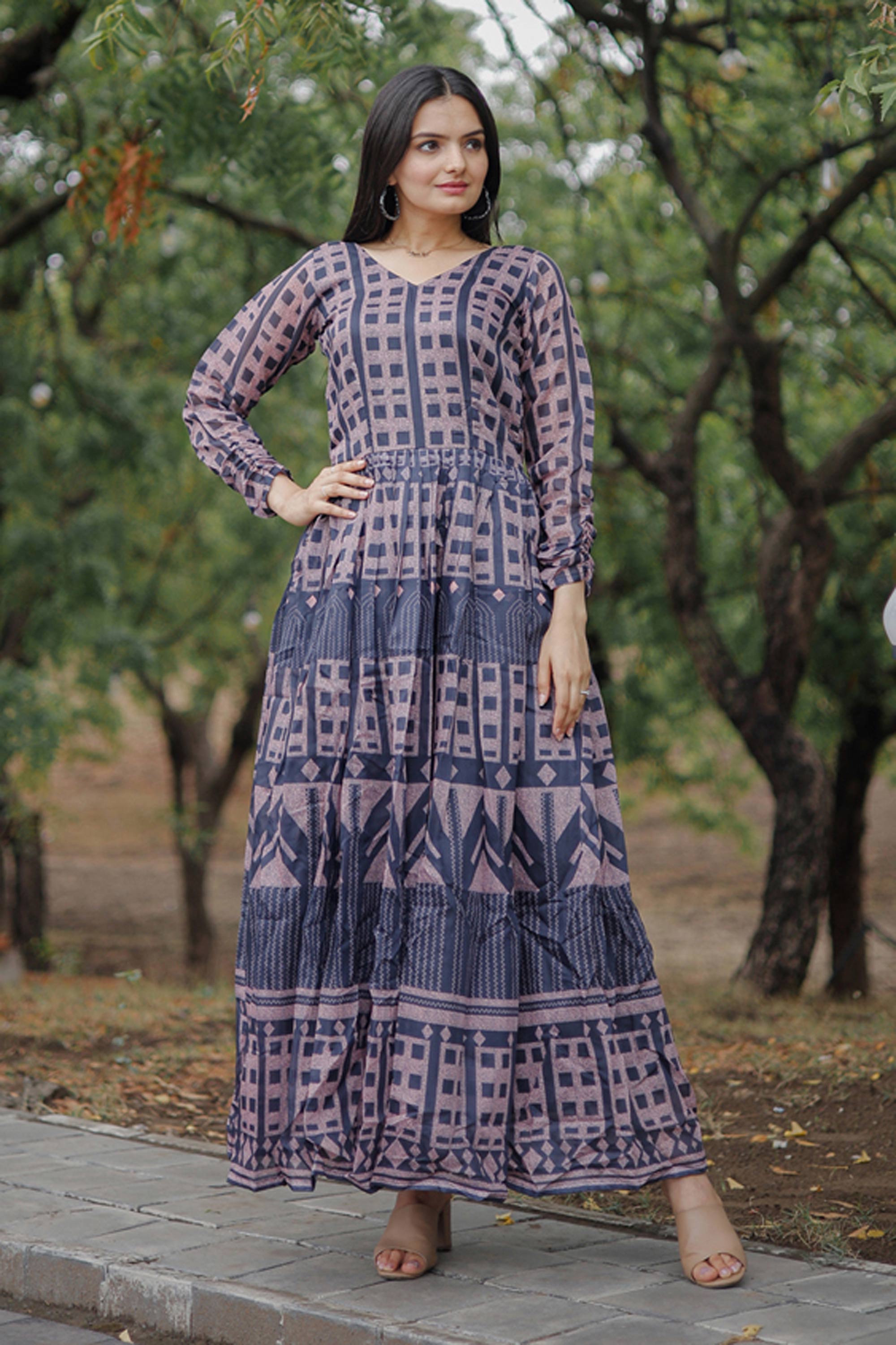 Celebrate special moments in style with this elegant Readymade Gown crafted from smooth Pure Chanderi fabric for a graceful drape. The soft cotton inner enhances comfort, while the printed work adds to its refined appeal. Designed in a rich color, this gown is perfect for functions, although slight color variations may occur due to digital photography.