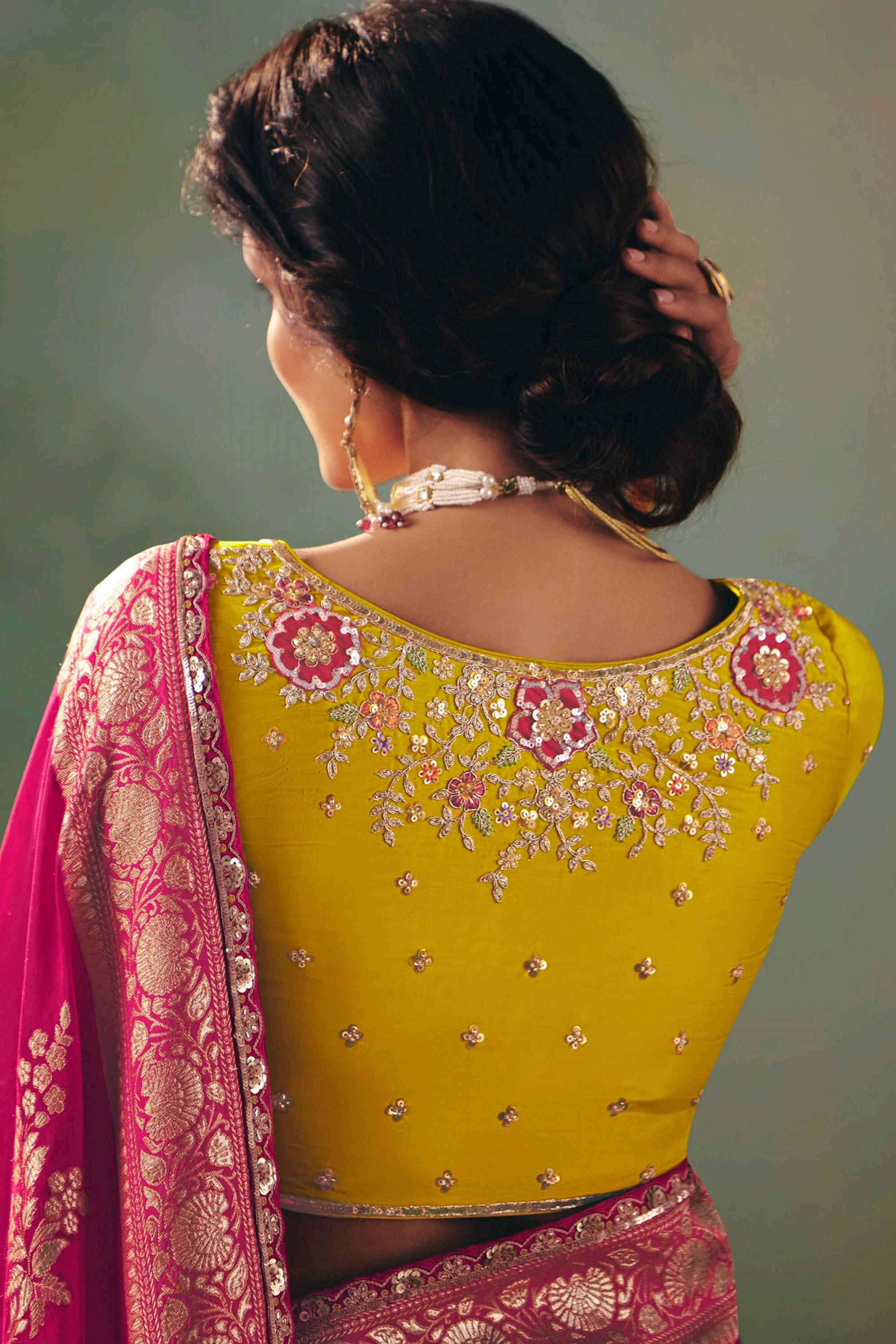 Rani Viscose Silk Zari Border Work Saree For Sangeet Wear