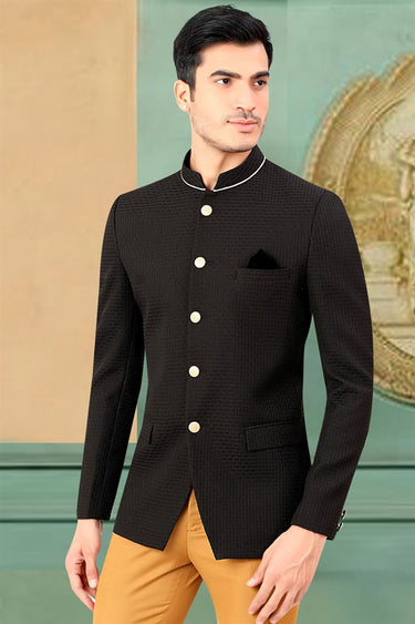 Adorning Black Rayon Fabric Wedding Style Jodhpuri Jacket