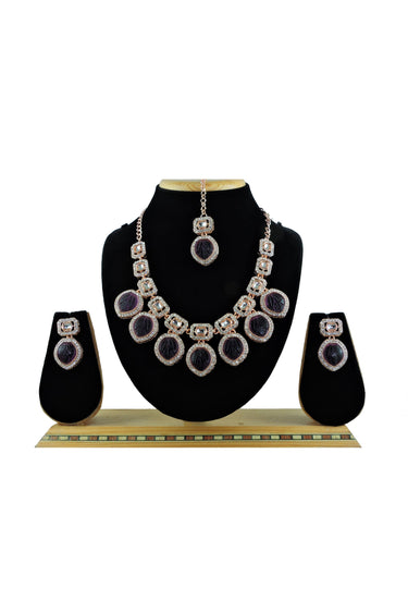 Beautify your ensemble with the Pretty Stone Alloy Necklace Set. This magnificent imitation jewellery is specifically designed for girls and women for premium function wear. The set, consisting of a necklace, a pair of earrings, and a mang tikka, radiates grace. Designed using sturdy alloy, the pieces are meant to be durable and lasting. Enjoy the sophistication of these fashion pieces on every special occasion.