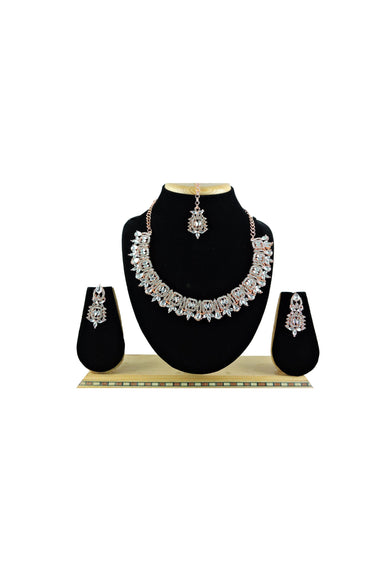 Alloy Material Silver Color Winsome Necklace Set Earrings And Mang Tikka For Women