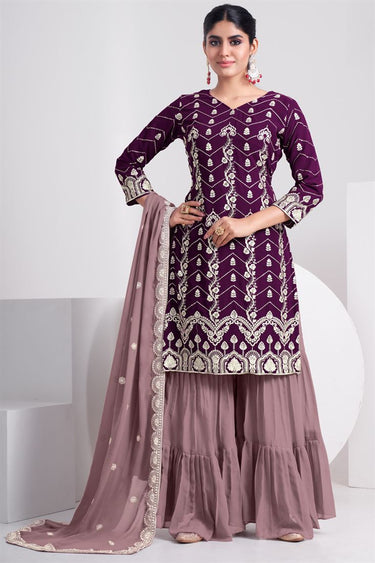 Alluring Purple Color Festive Look Georgette Palazzo Suit