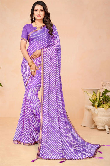Amazing Purple Color Chiffon Fabric Casual Style Saree