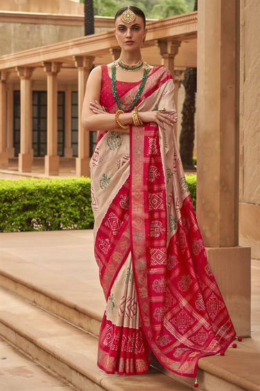 Appealing Beige Color Art Silk Fabric Patola Printed Saree