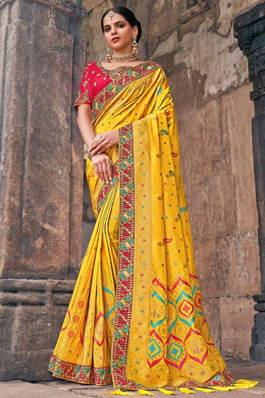 Appealing Sangeet Wear Art Silk Fabric Saree In Yellow Color