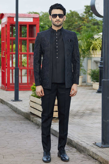 Elevate your style with this impeccably tailored Jodhpuri set, perfect for weddings, functions, and sangeet. Featuring a royal jacket, a complementing kurta, and trousers, this ensemble blends tradition with modern sophistication. Note: Slight color variations may occur due to digital photography. Make every celebration unforgettable with timeless charm!