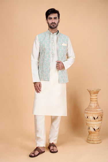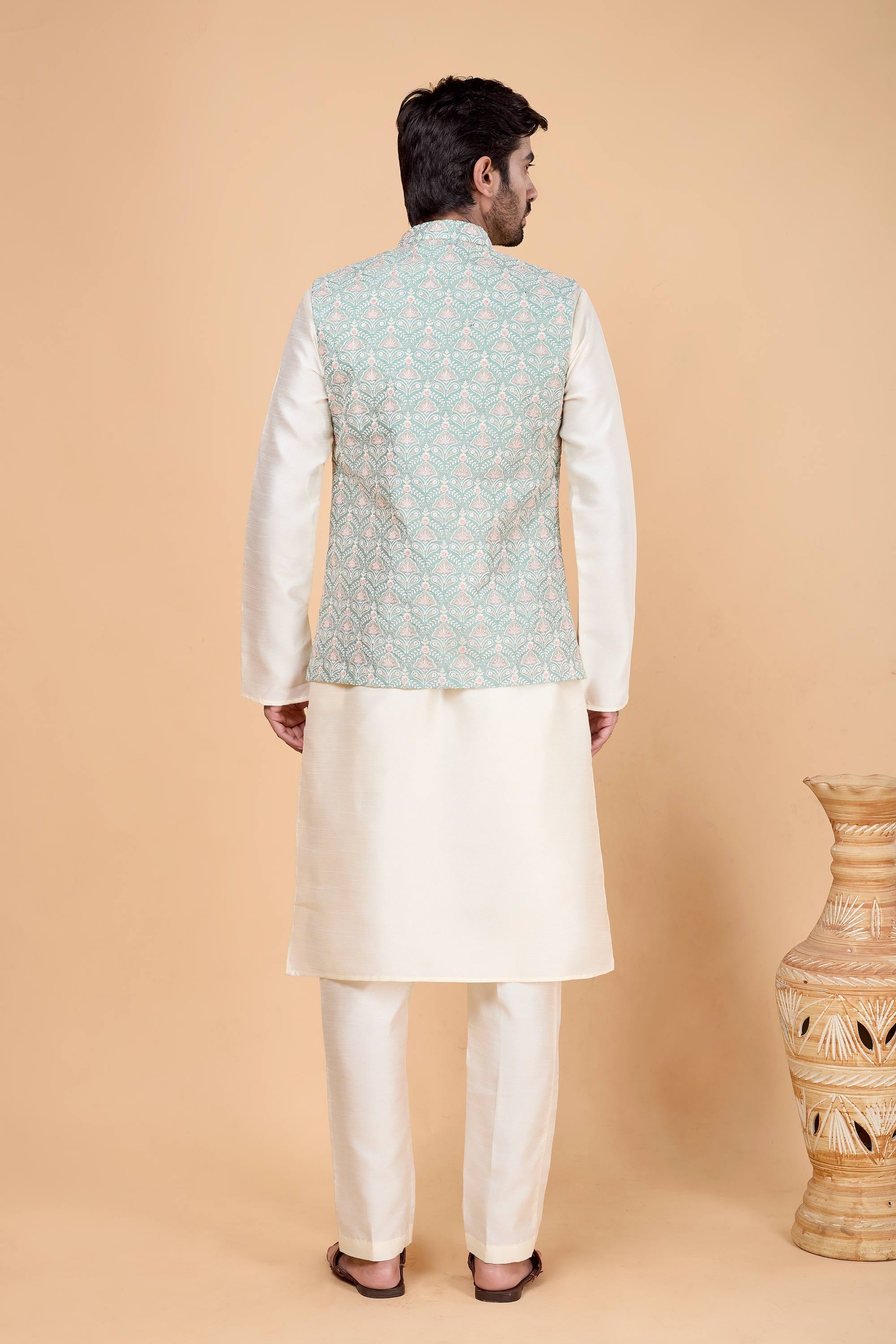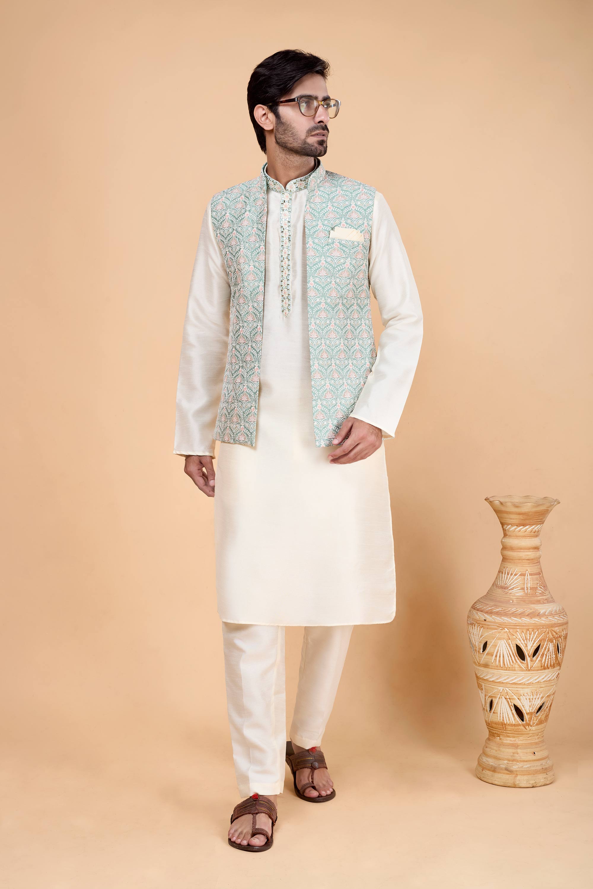 Step into timeless elegance with the Lovely Reach Color Wedding Function Designer Readymade Mens 3-Piece Kurta and Jacket with Aligadhi Pant. Designed for festive occasions and weddings, this premium outfit combines tradition with modern style. The high-quality fabric ensures comfort throughout your celebrations, while the detailed tailoring adds sophistication to your overall look. The ensemble includes a ready-to-wear kurta, an intricately designed jacket, and matching Aligadhi pants, offering a complete attire solution in one package. Ideal for groomsmen, wedding guests, or special festive gatherings, this versatile design stands out for its exquisite finish and vibrant color choices. Experience effortless style today.
