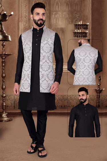 Art Silk Black Color Lavish Kurta Pyjama With Jacket