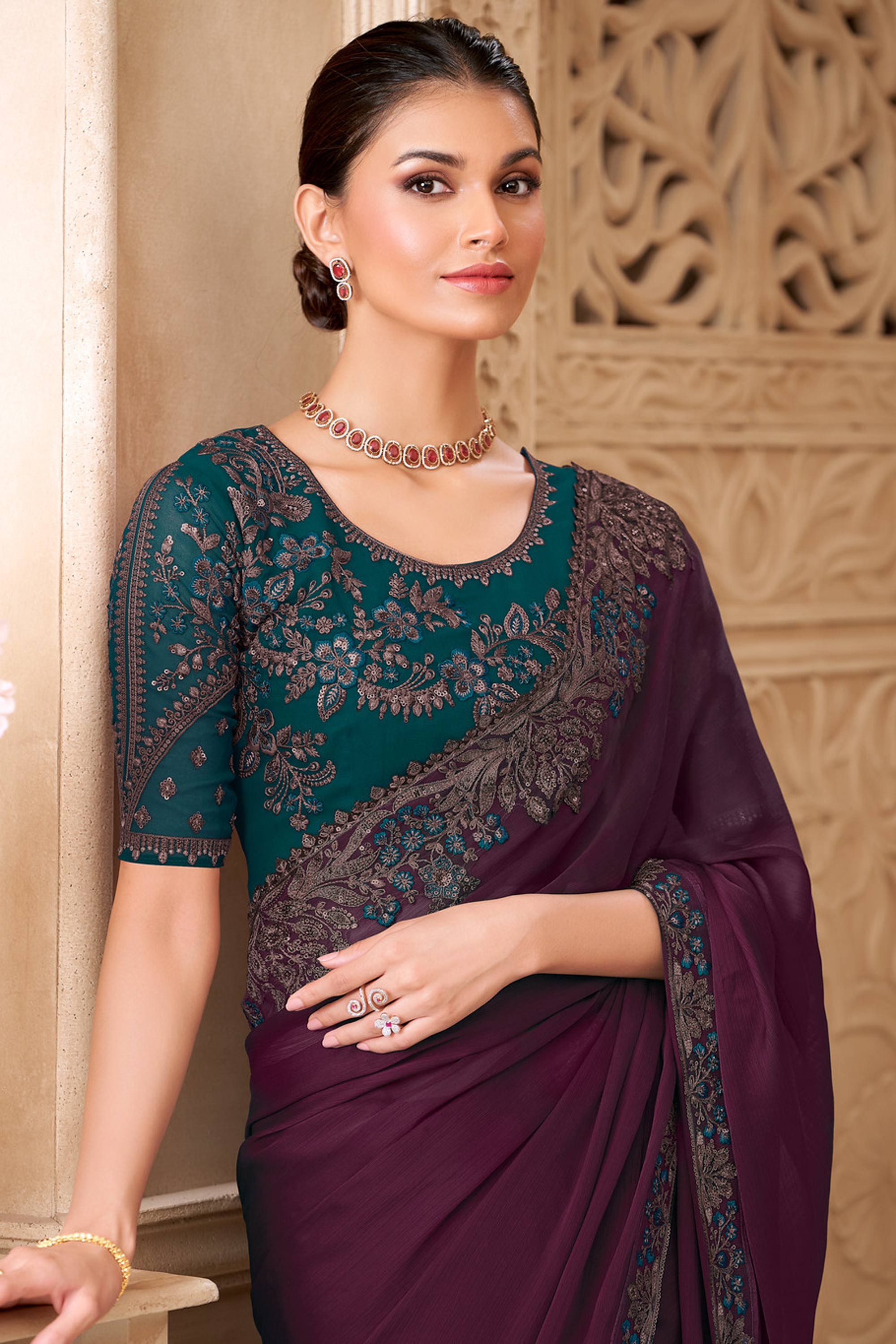 Art Silk Embroidered Burgundy Saree For Party Wear