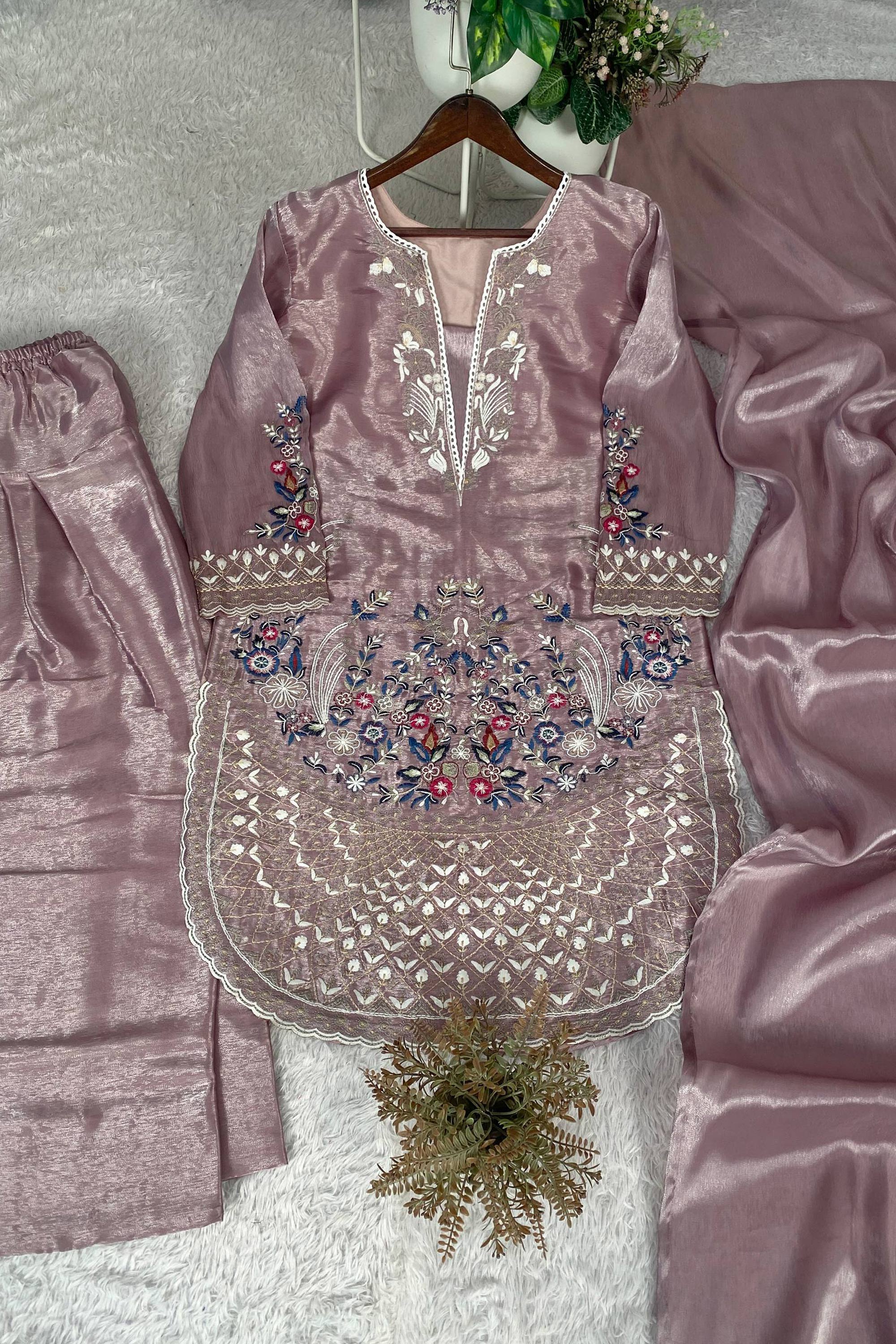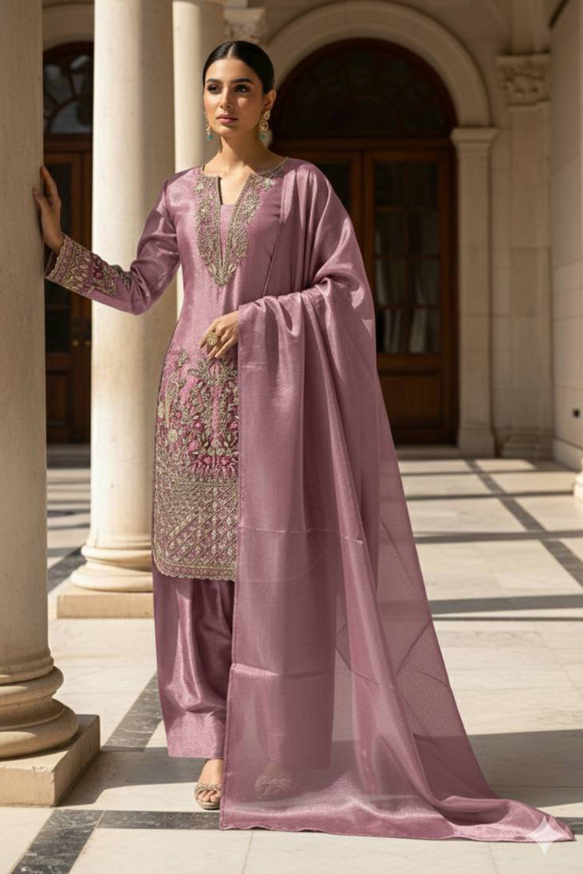 Art Silk Embroidered Pink Readymade Designer Salwar Kameez With Dupatta For Function Wear