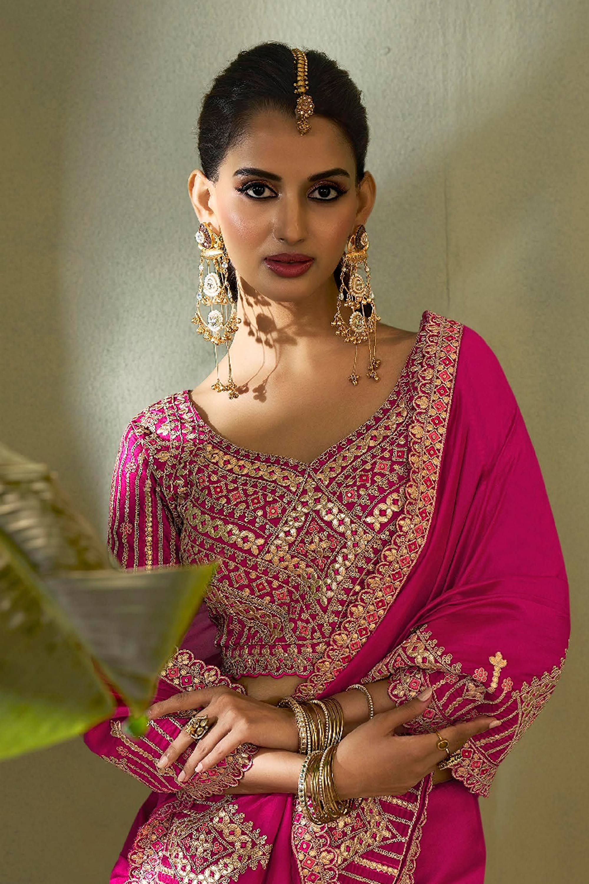 Art Silk Embroidered Rani Saree For Festive Wear