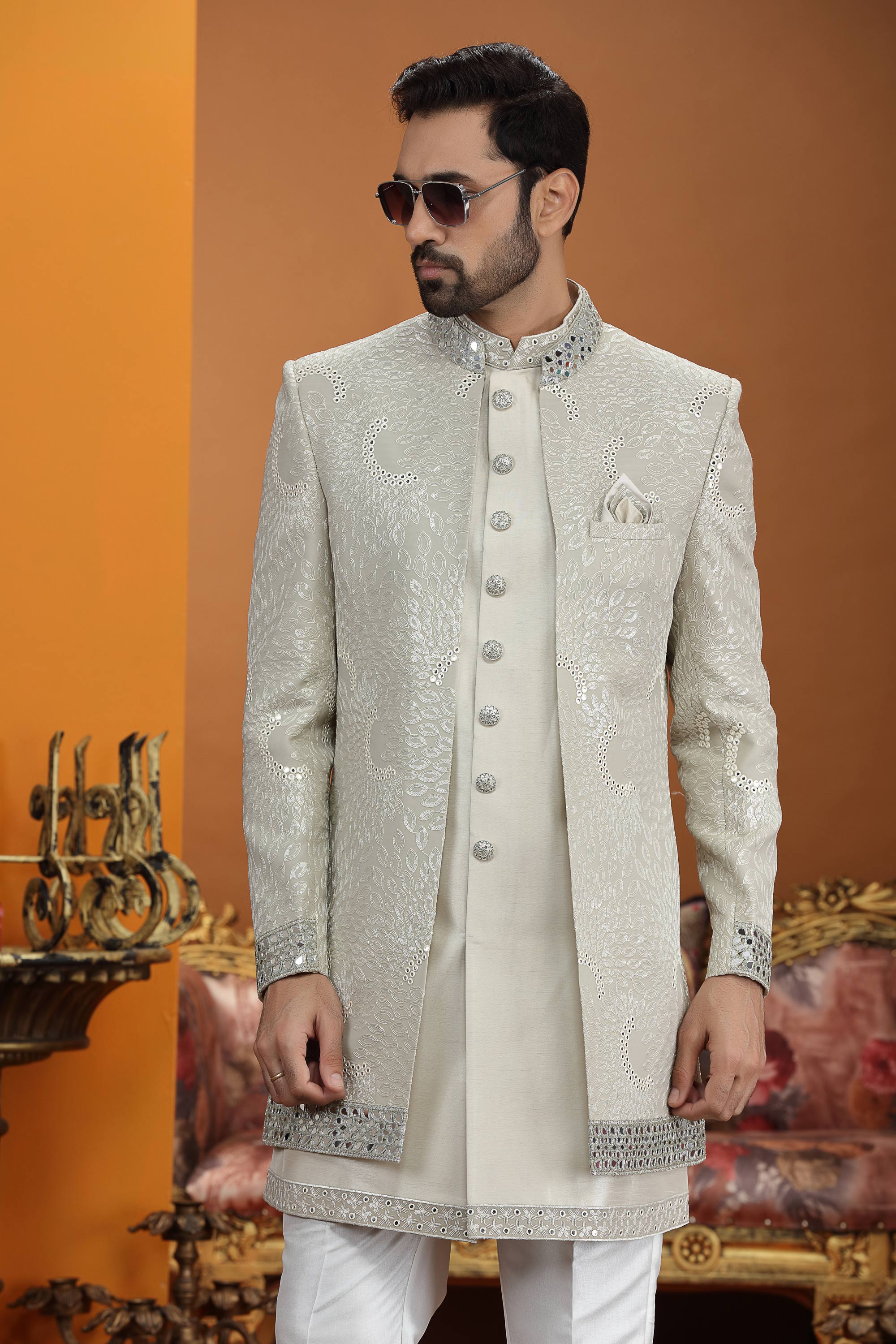 Art Silk Fabric Beige Readymade Indo Western For Wedding Wear