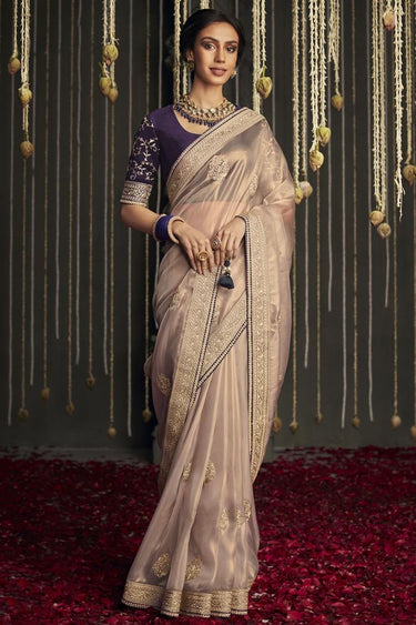 Art Silk Fabric Chikoo Color Winsome Party Look Saree