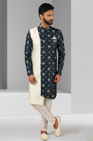 Art Silk Fabric Cream Color Reception Wear Indo Western For Men