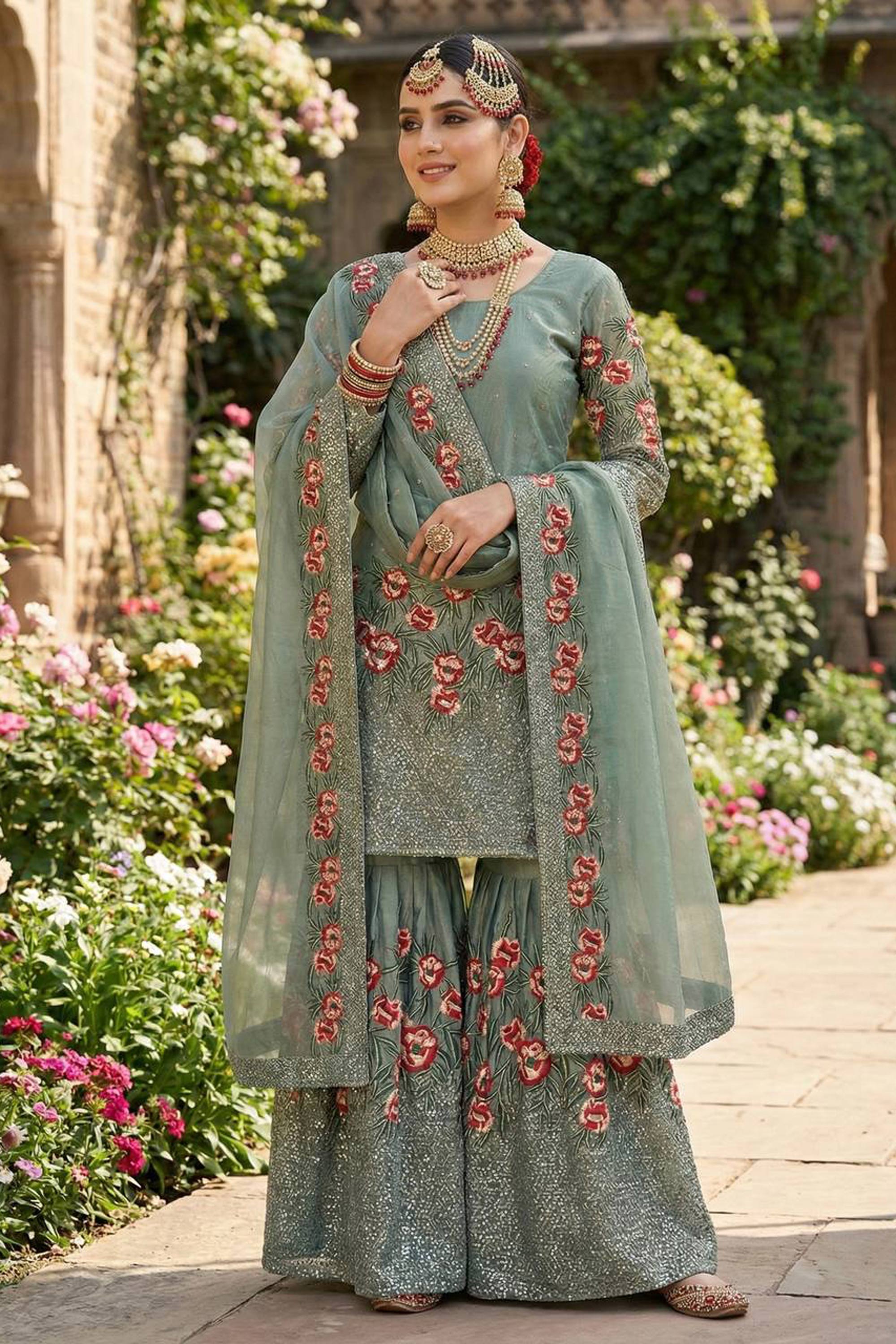 Art Silk Fabric Cyan Function Wear Readymade Palazzo Suit