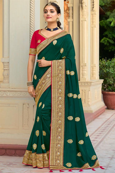 Art Silk Fabric Embroidery Border Work Saree In Radiant Green Color