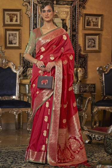 Art Silk Fabric Festival Wear Weaving Work Splendid Saree In Red Color