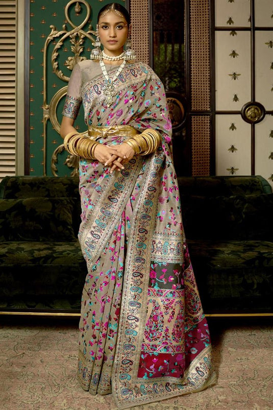 Art Silk Fabric Festive Look Dark Beige Color Gorgeous Saree
