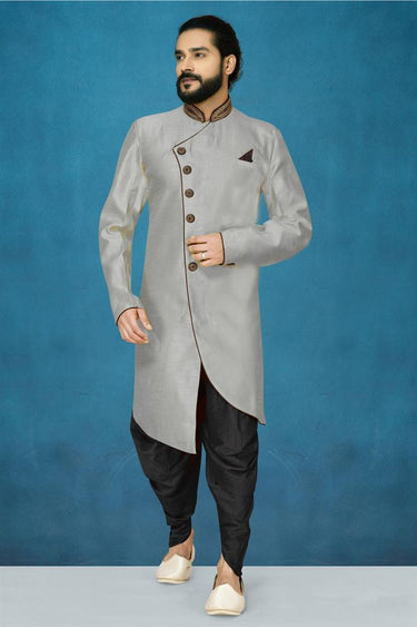 Art Silk Fabric Function Wear Coveted Dhoti Style Indo Western In Grey Color