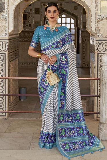 Art Silk Fabric Function Wear Sky Blue Color Patola Printed Supreme Saree