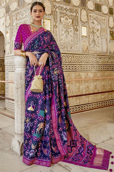 Art Silk Fabric Function Wear Vivacious Patola Printed Saree In Navy Blue Color