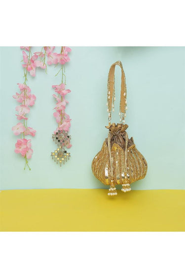 Art Silk Fabric Golden Color Excellent Potli Bag With Hand Work