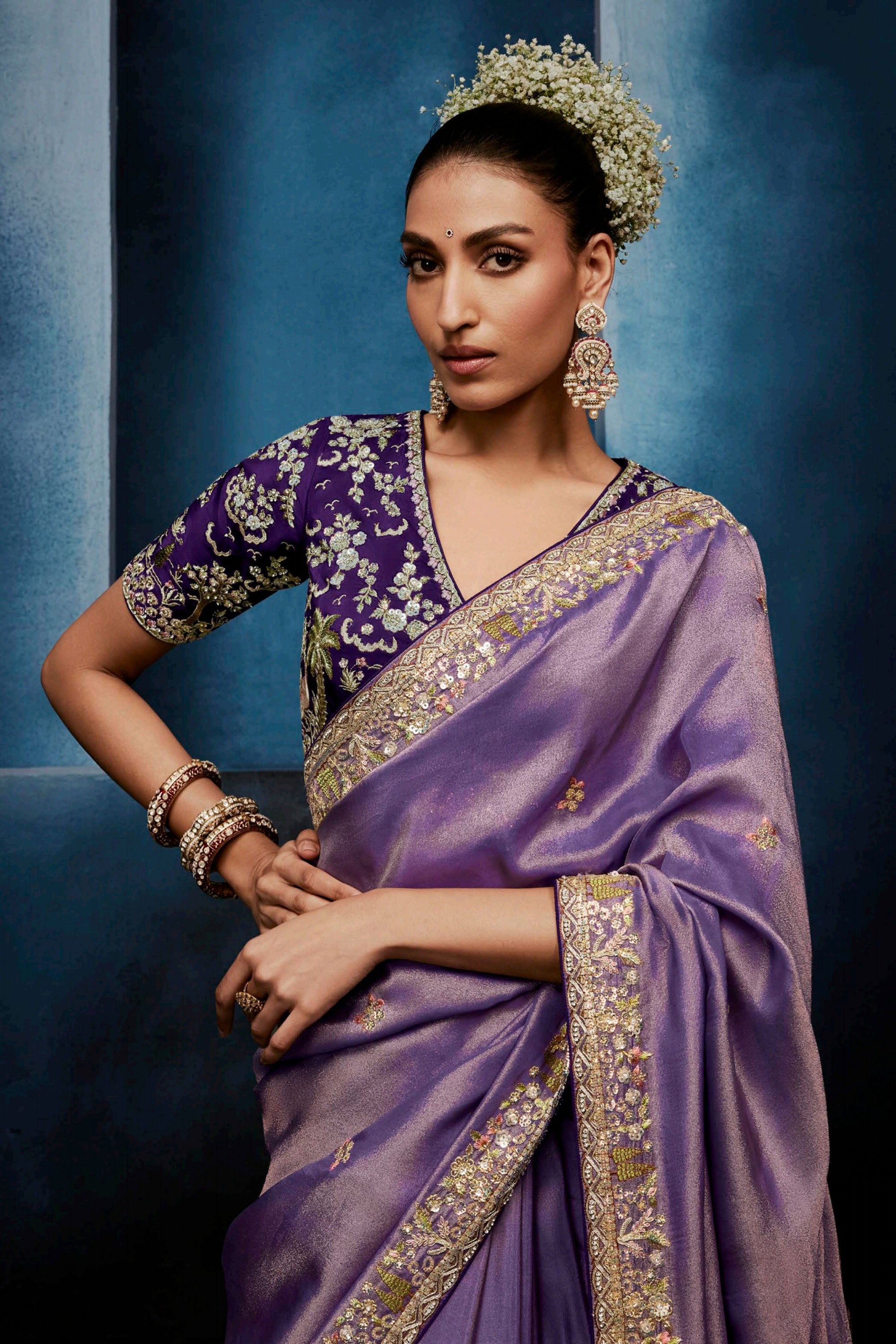 Art Silk Fabric Lavender Color Beatific Look Party Style Saree