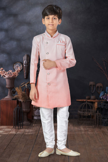 Art Silk Fabric Peach Color Boys Readymade Indo Western