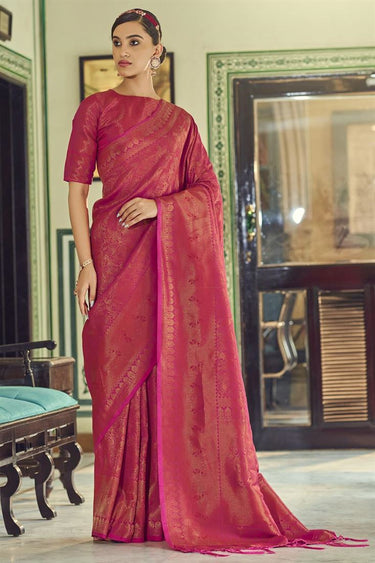 Art Silk Fabric Rani Color Special Weaving Work Saree