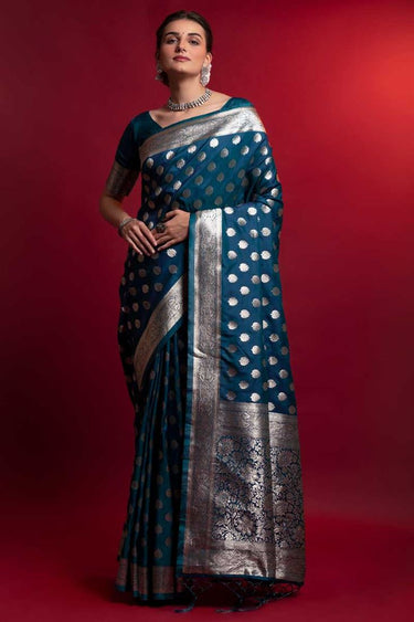 Art Silk Fabric Teal Color Elegant Festive Look Saree