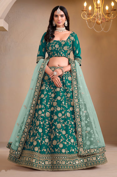 Art Silk Fabric Teal Color Sangeet Wear Lehenga Choli