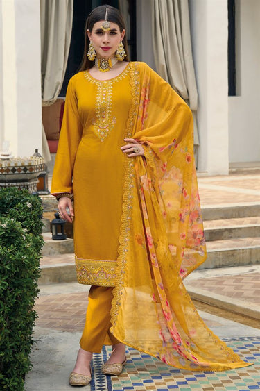 Art Silk Fabric Yellow Color Beatific Look Salwar Suit