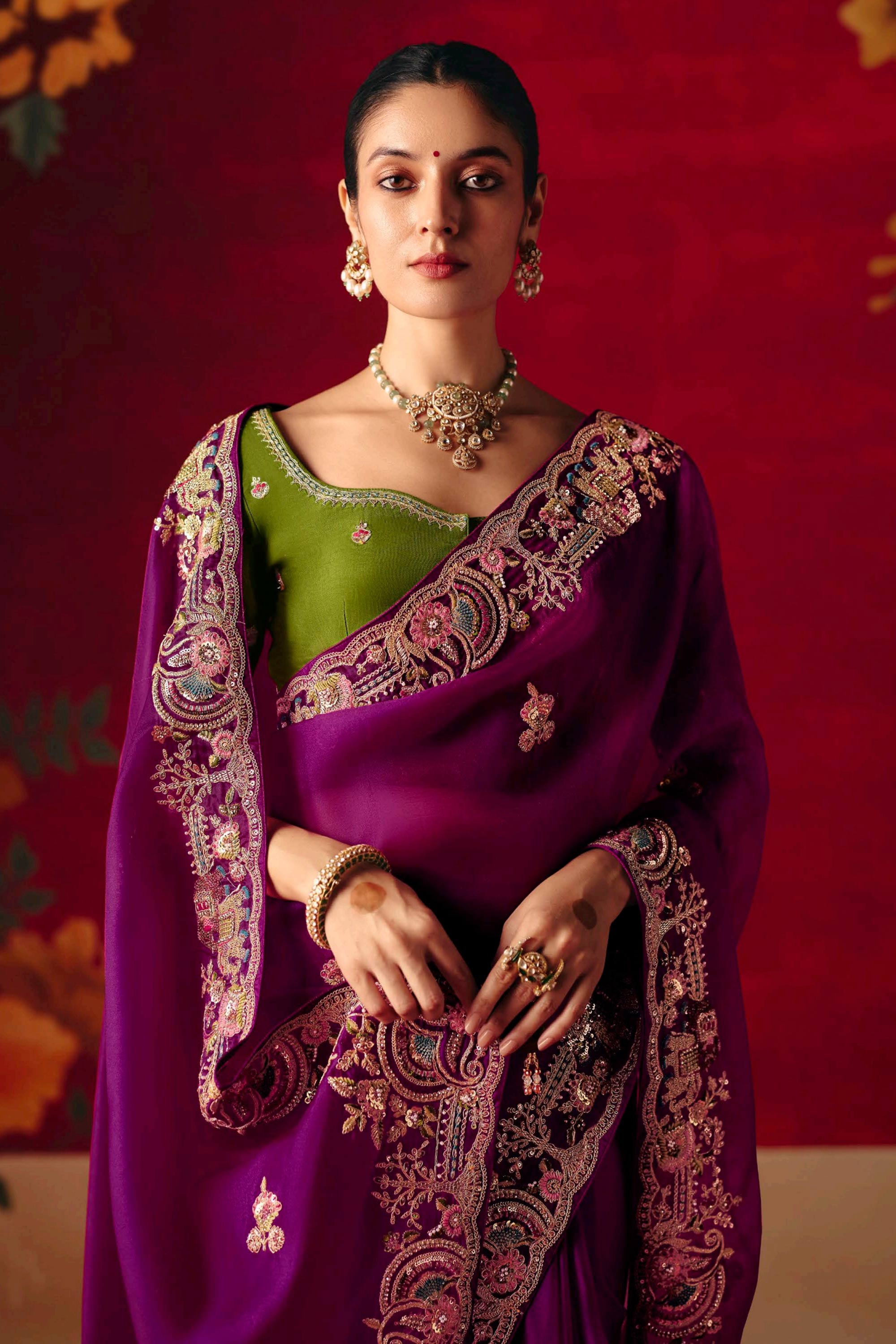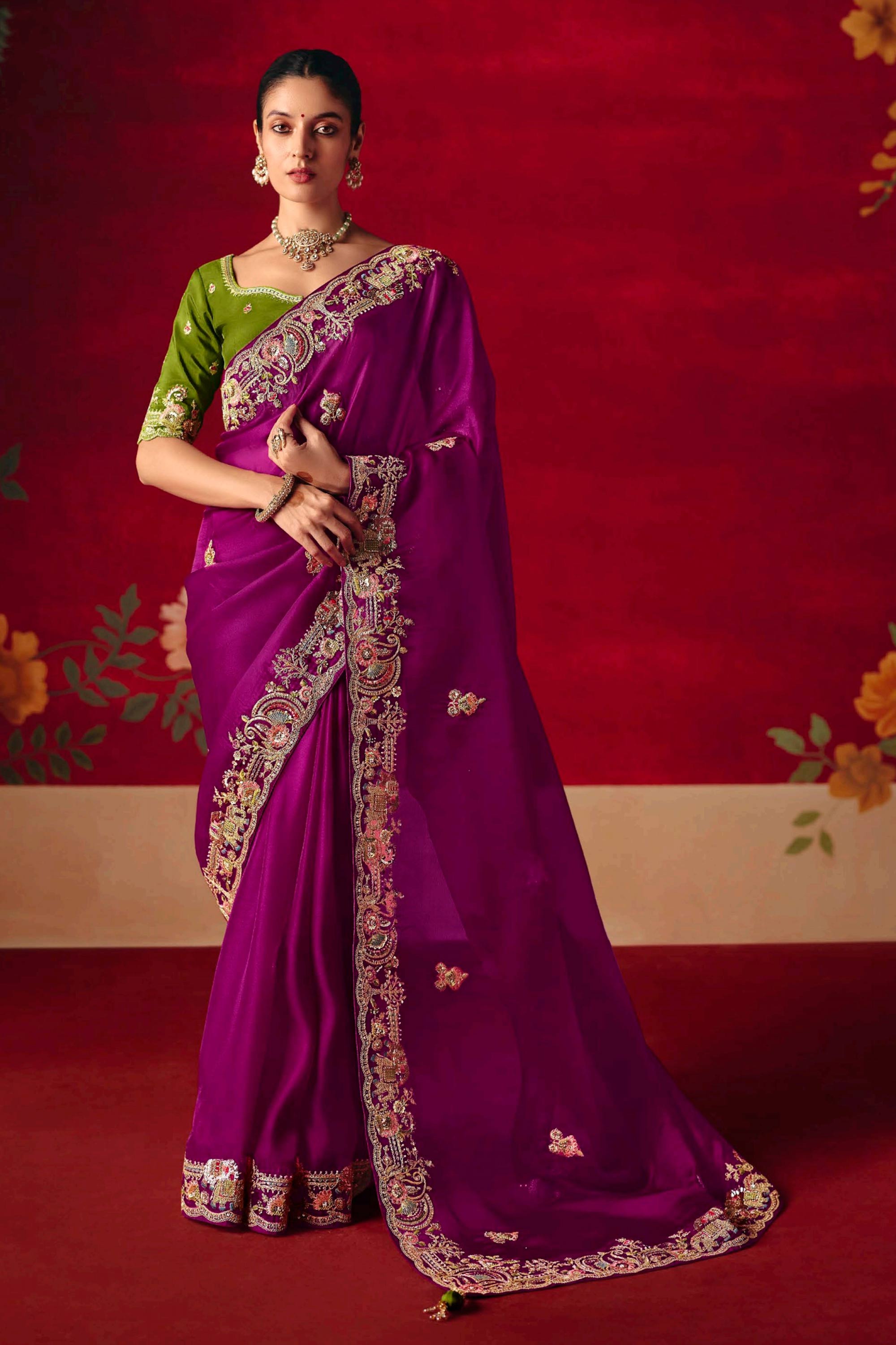 Step into elegance with this color-rich silk saree designed for brides and wedding occasions. Highlighted with detailed sequined embroidery, this saree adds an essence of charm and grace to your appearance. Its luxurious silk fabric not only enhances the design but also ensures you feel comfortable throughout the event. The included unstitched blouse gives you creative liberty to style your ensemble as per your preference. Ideal for weddings, receptions, or any traditional gathering, this saree truly celebrates the art of heritage fashion with a modern flair. Perfect for creating unforgettable memories.