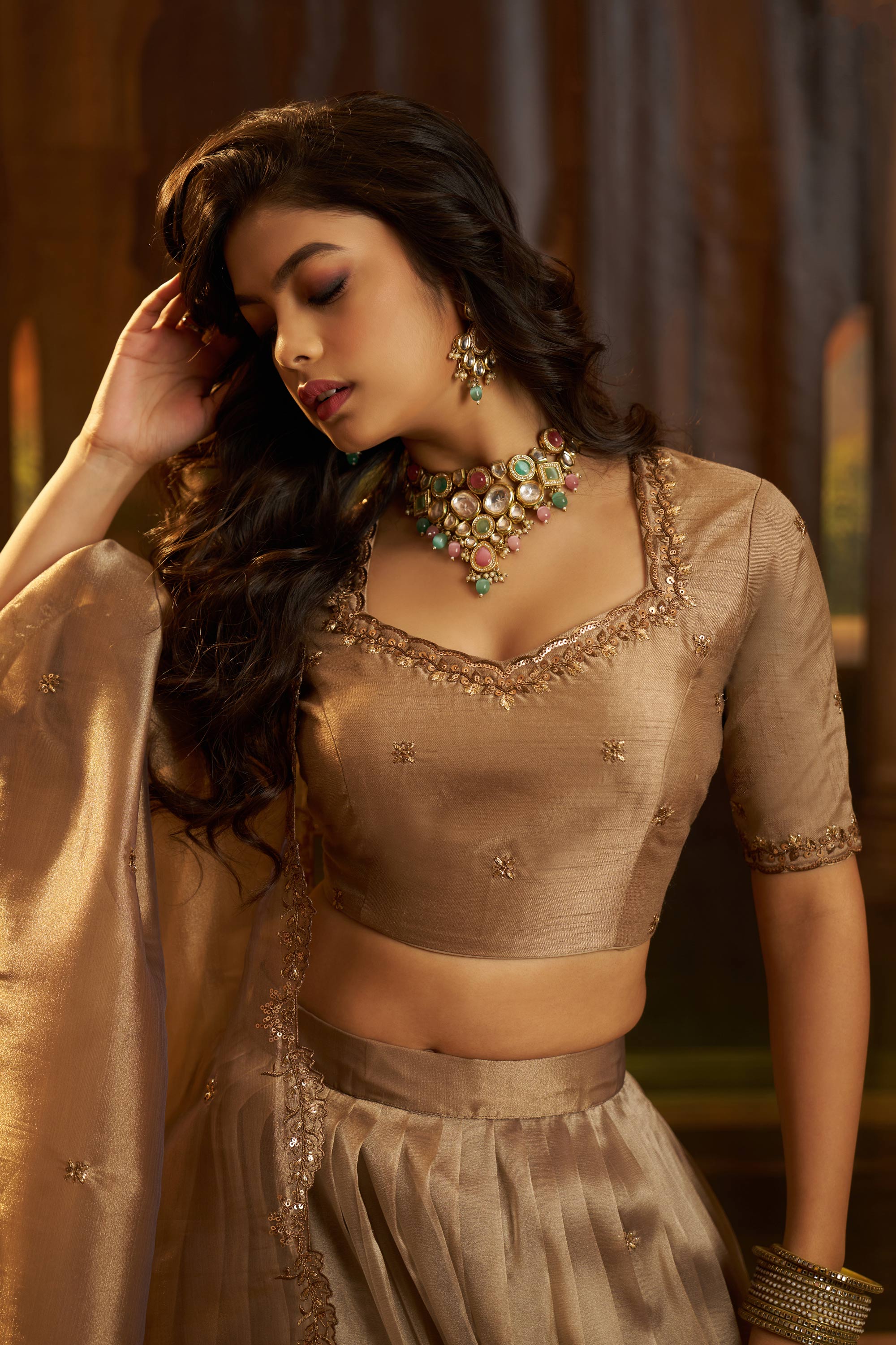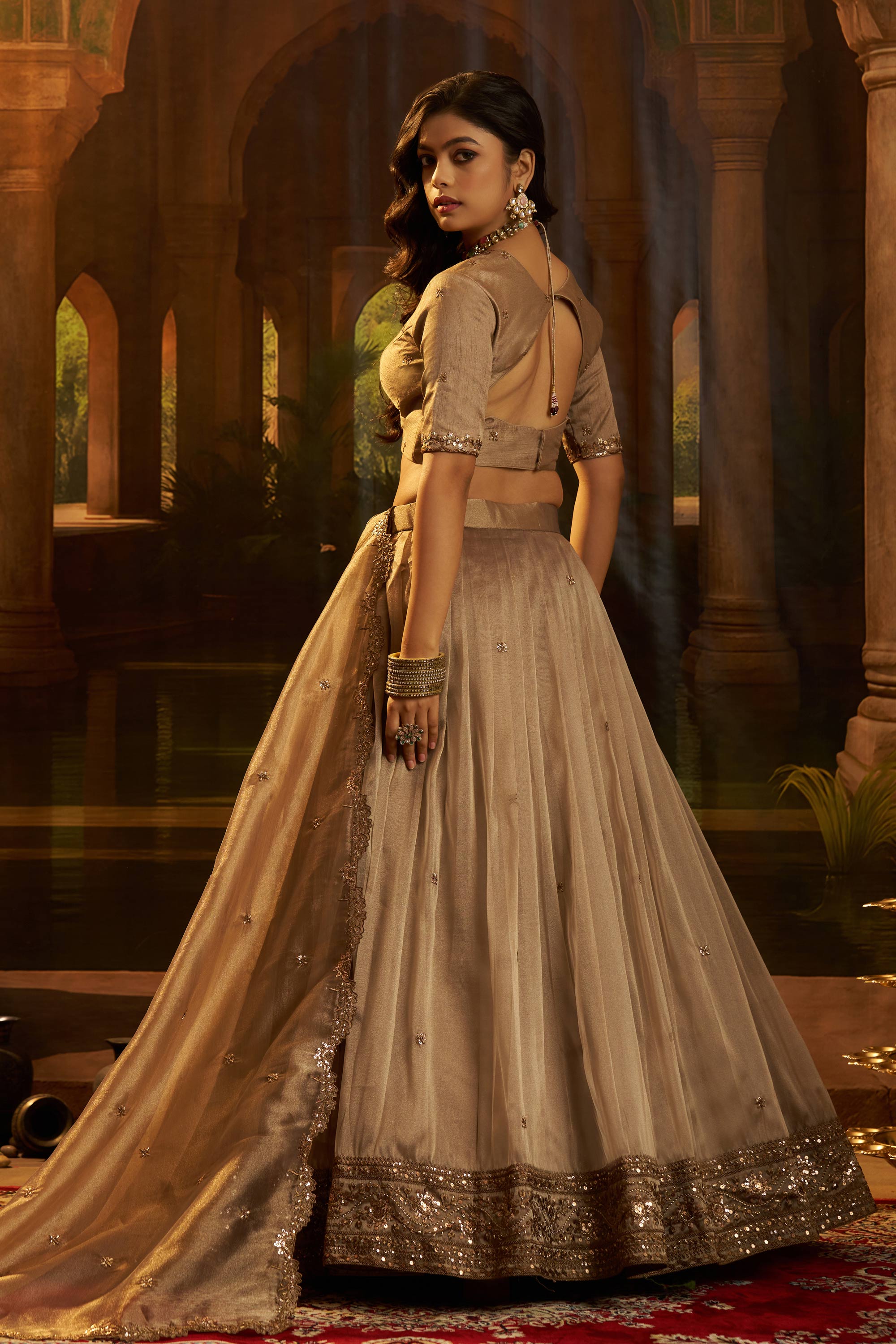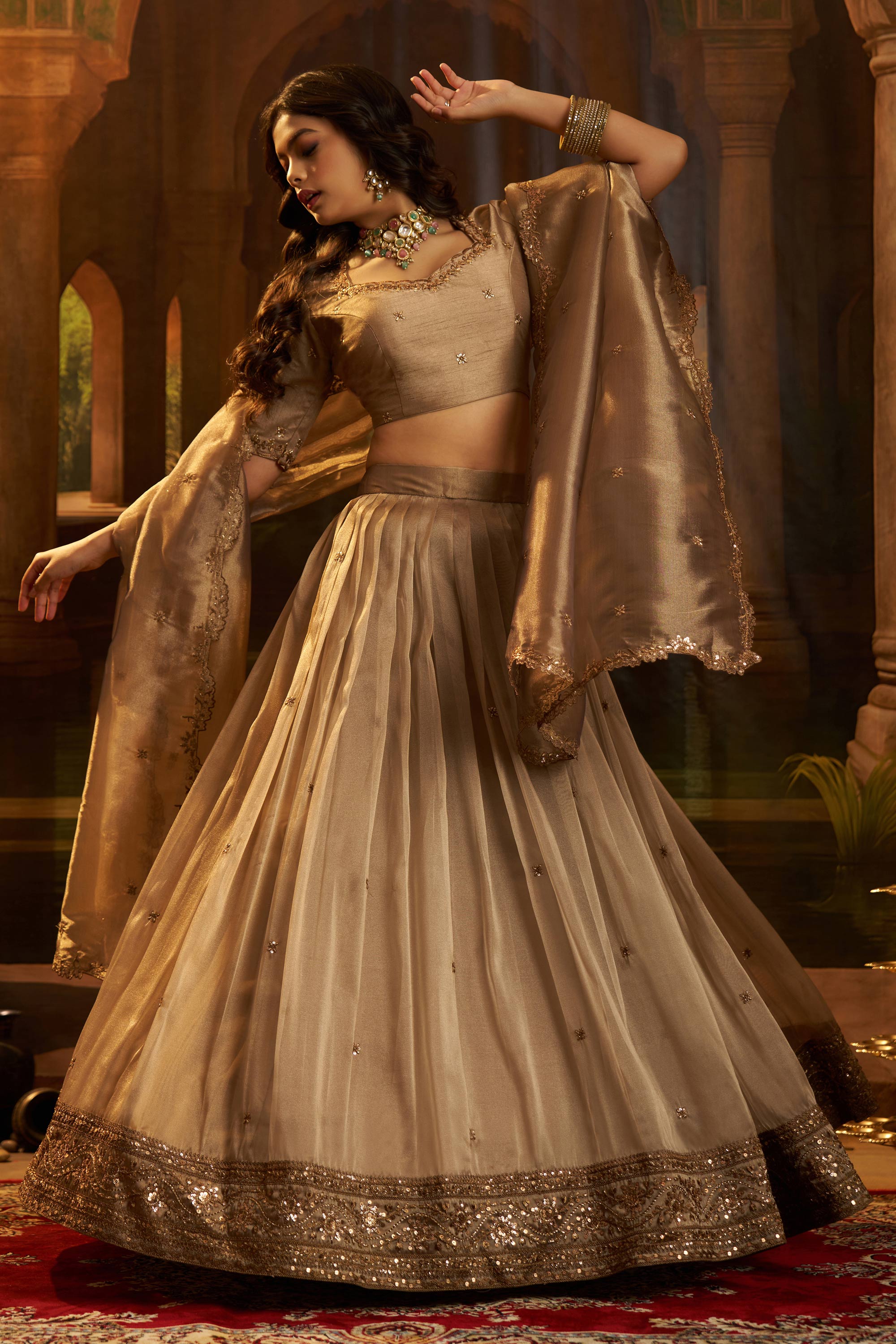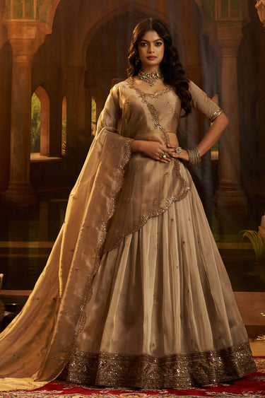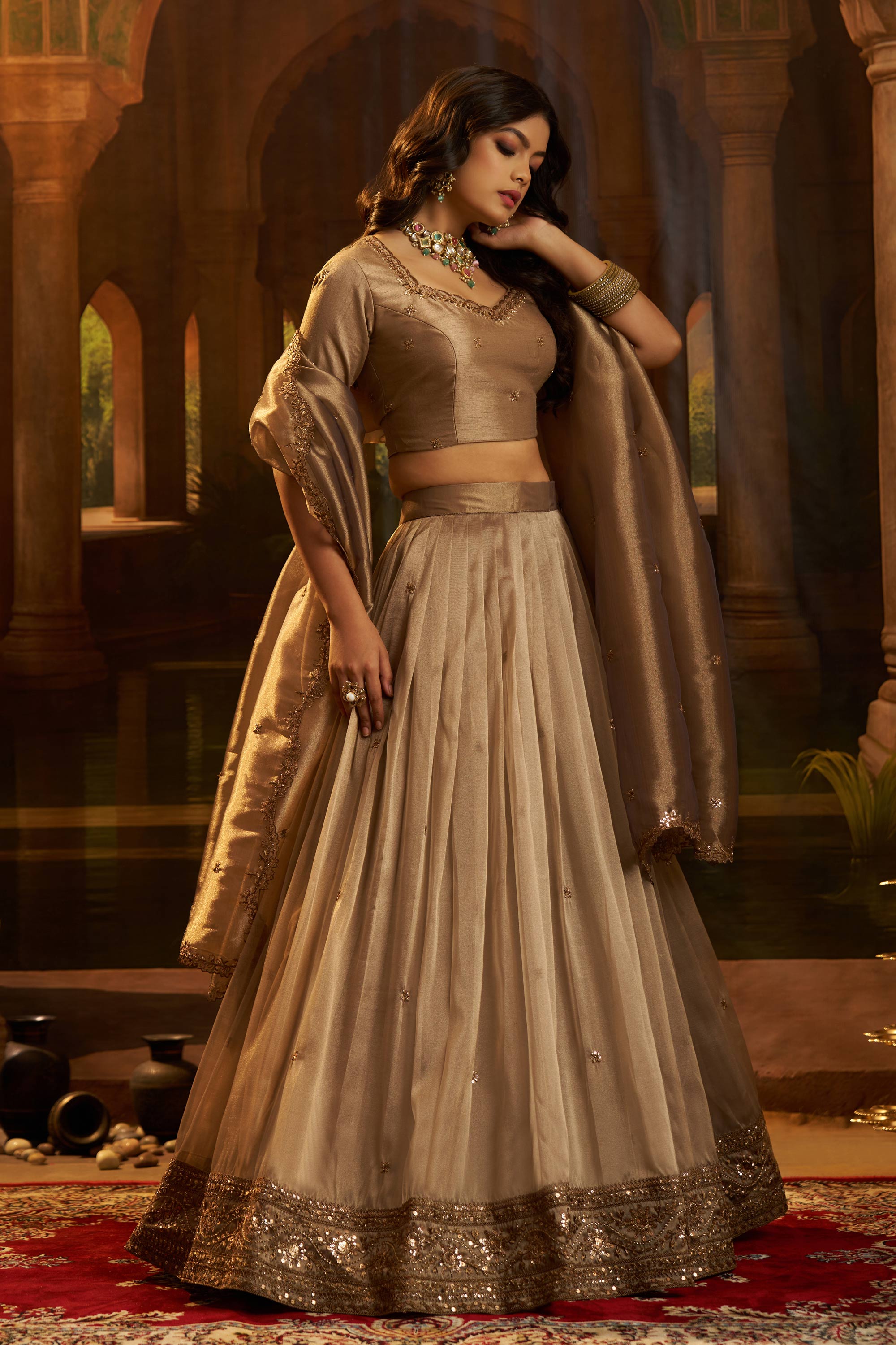 Art Silk Sequins Work Brown Wedding Wear Lehenga Choli With Dupatta
