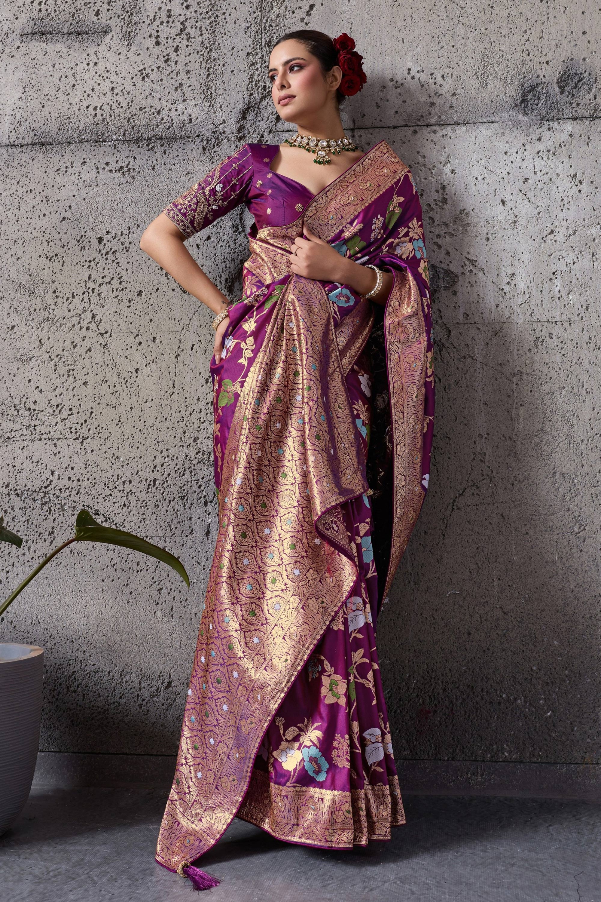 Art Silk Weaving Work Purple Wedding Wear Saree