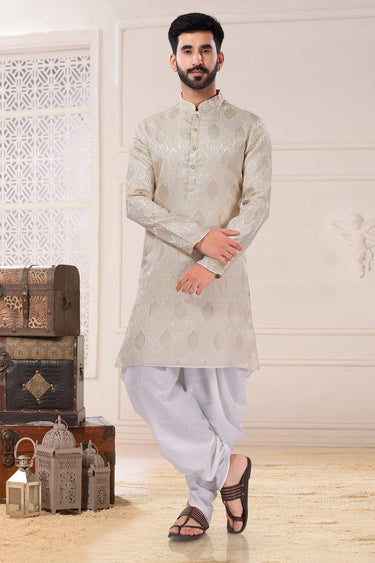 Art Silk White Color Wedding Wear Readymade Designer Men Kurta Pyjama