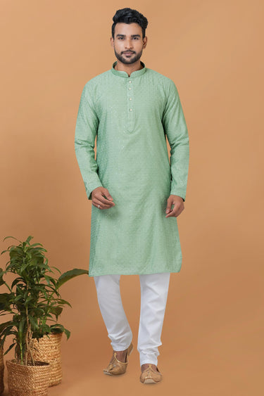 Artistic Readymade Sequins Embroidery Men Kurta Pyjama