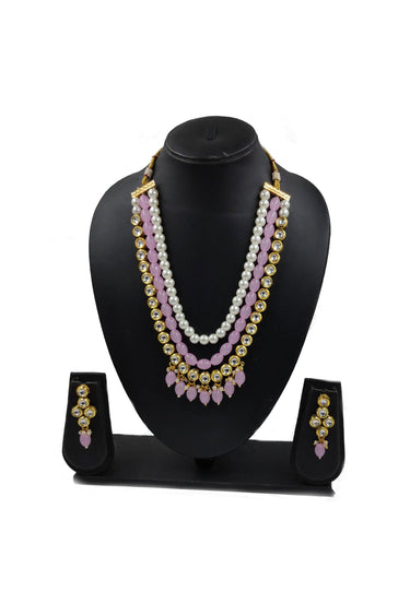 Attractive Pink Alloy Material Superior Necklace with Earrings