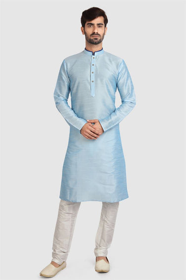 Attractive Sky Blue Color Art Silk Fabric Readymade Kurta Pyjama For Men