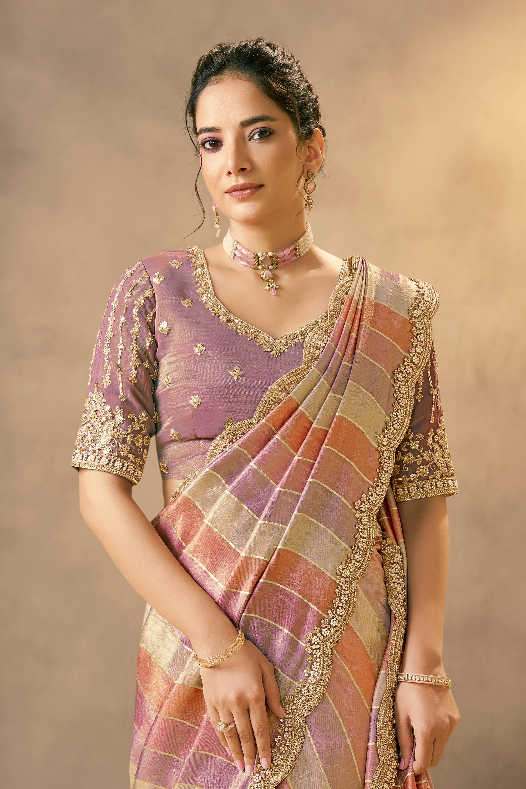 Turn heads at any event with the Reach Color Sequins Embroidered Border Work Designer Saree. This striking piece features exquisite embroidery paired with sparkling sequins on the border for a refined, classy look. Ideal for weddings, festive occasions, or formal parties, the saree offers the perfect blend of elegance and comfort. The unstitched blouse piece included gives you the freedom to design it as per your preference. A great choice for making an impression, this saree adds timeless charm and beauty to your wardrobe. Elevate your style effortlessly with this elegant masterpiece.