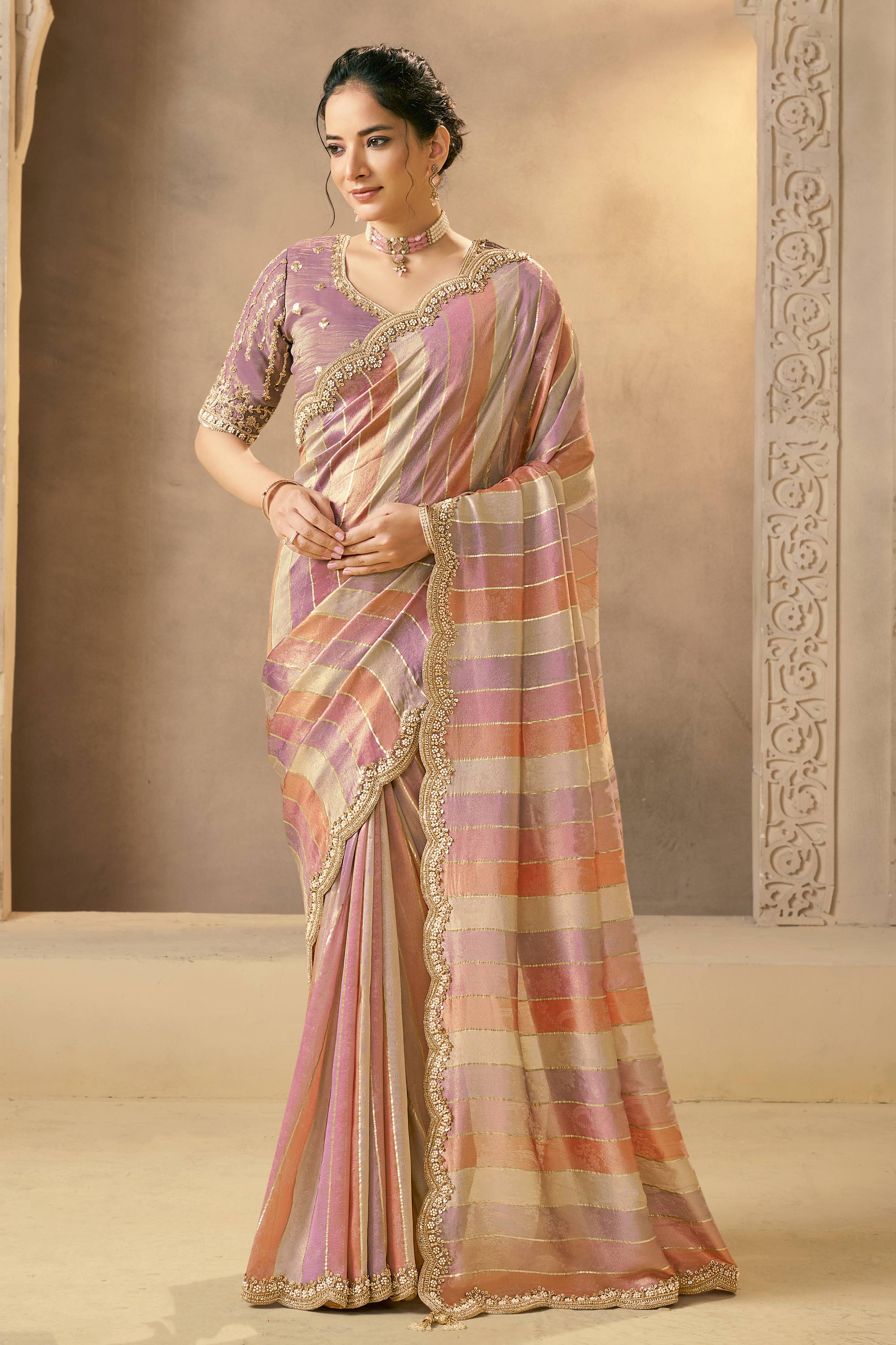 Banarasi Fabric Border Work Multi Color Wedding Wear Saree