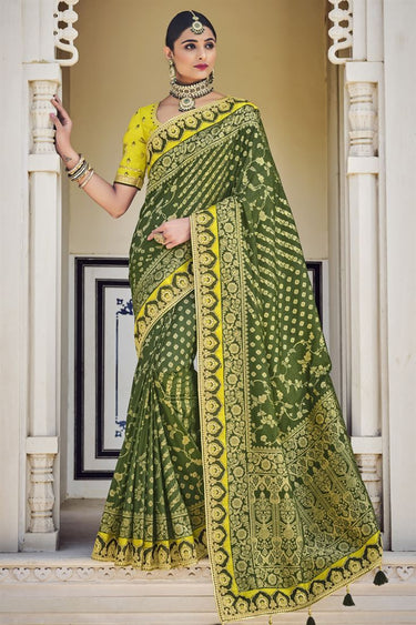 Banarasi Fabric Dark Green Color Wedding Wear Designer Saree With Weaving Work