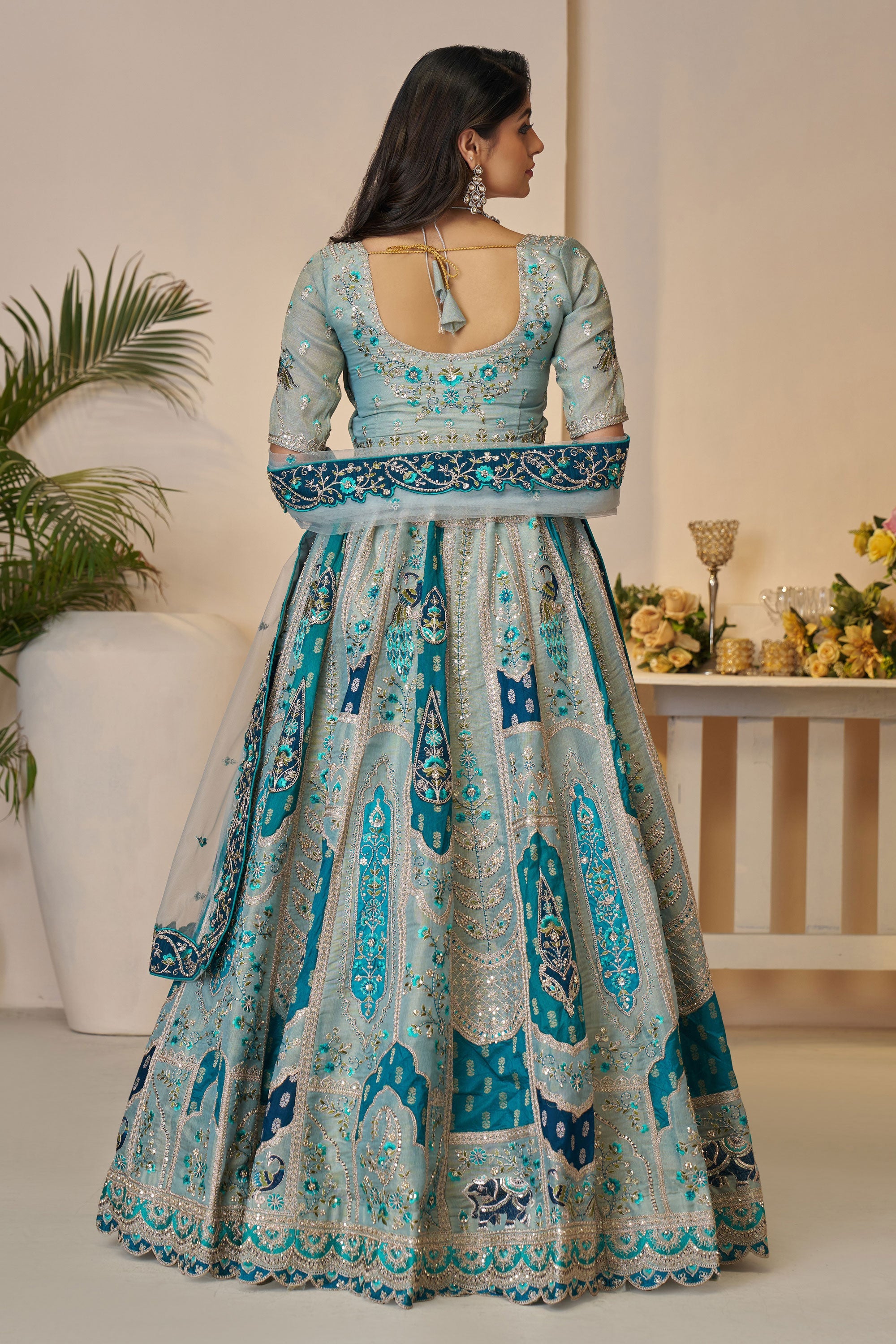 Banarasi Silk Fabric Light Cyan Sangeet Wear Lehenga Choli