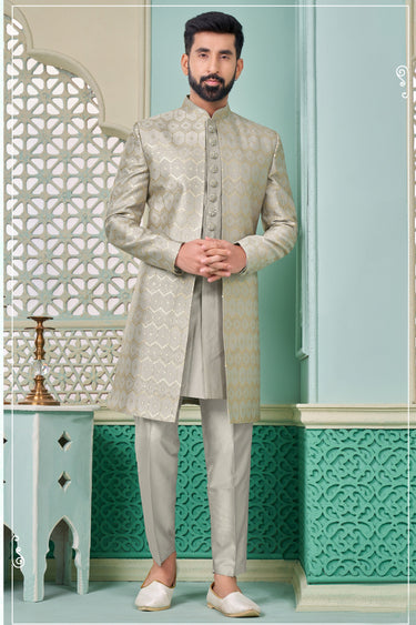 Banarasi Silk Fabric Readymade Nawabi Style Indo Western In Grey Color