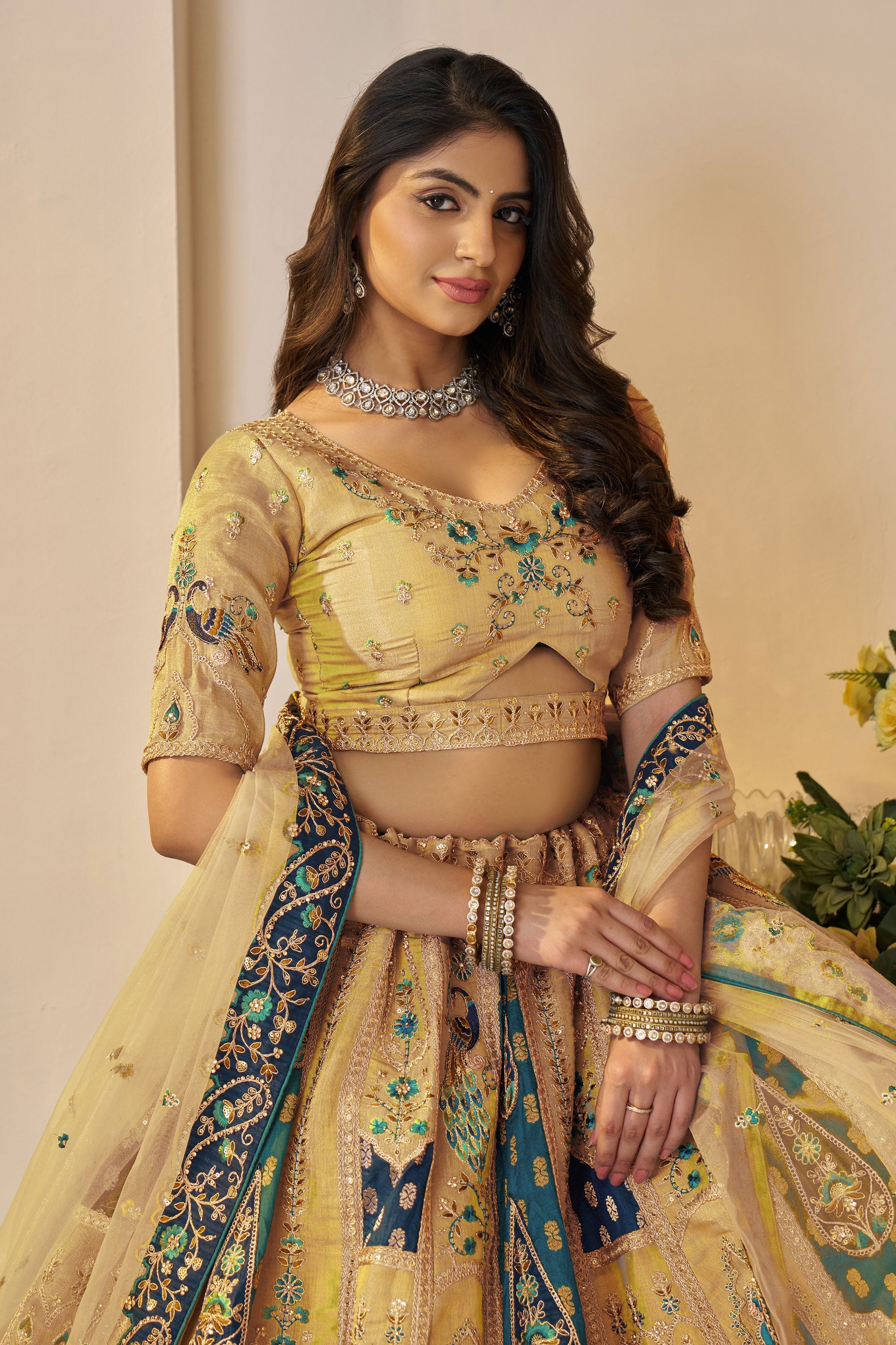 Banarasi Silk Fabric Yellow Occasion Wear Lehenga Choli